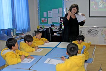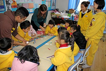 2014年3月5日,來自宋慶齡國際幼兒園的25位大班小朋友、廖園長以及幾位老師來到我校國際項目部參觀、學習。25位小朋友被分為兩組,分別進入Roxanne Price老師和Rebecca Roebig老師的教室聽課。Price老師教孩子們英文兒歌、與孩子們一起做游戲、并指導孩子們在紙上作畫。Roebig老師引導孩子們用英文表達不同的顏色、識別英文的大小寫等。之后,蔡老師與李老師帶同學們參觀校園,還為孩子們頒發(fā)了紀念品。今天孩子們感到非常興奮,因為這是他們人生第一次對小學有印象。我們相信孩子們回家后會給他們的父母講他們到成都美視師一學校參觀學習的所見所聞,這將成為他們人生中難忘的記憶。