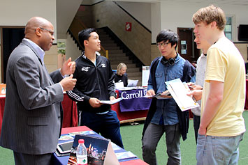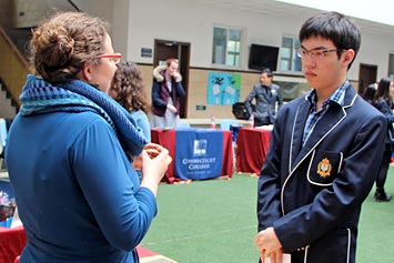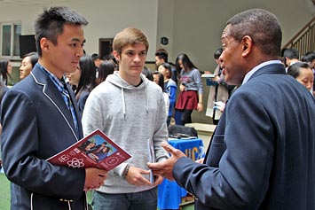 2014年3月26日,27所海外大學(xué)招生咨詢會在我校國際項目部舉行。海外大學(xué)代表在國際項目部禮堂為同學(xué)們做了精彩的招生宣講。我們還邀請了成都美國學(xué)校、成都國際學(xué)校、樂盟國際學(xué)校和美視中美英才班的同學(xué)們參加本次咨詢會。同學(xué)們現(xiàn)場填寫了報名表并領(lǐng)取了一些招生資料。通過同學(xué)們和家長們與海外大學(xué)招生代表面對面交談,大家收獲頗豐,受益良多。