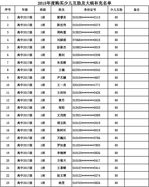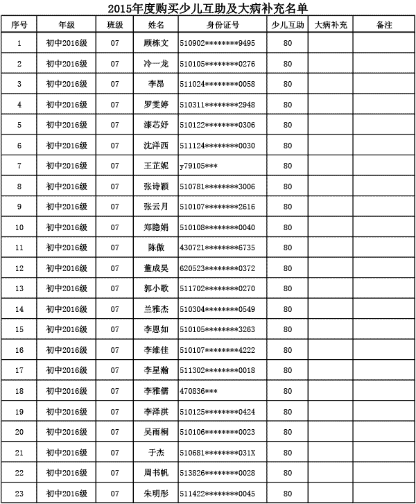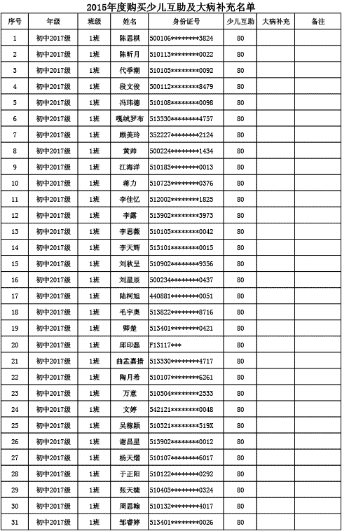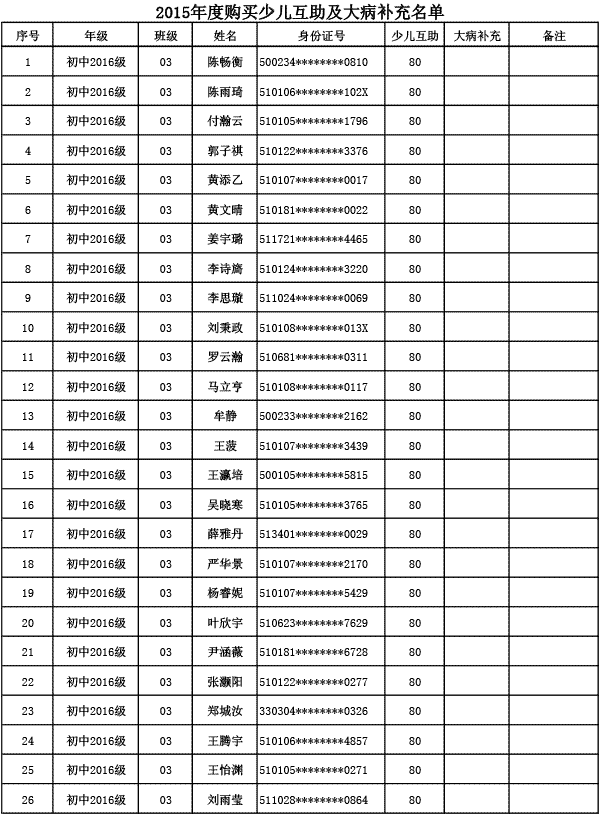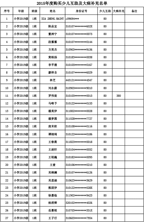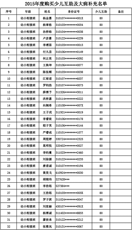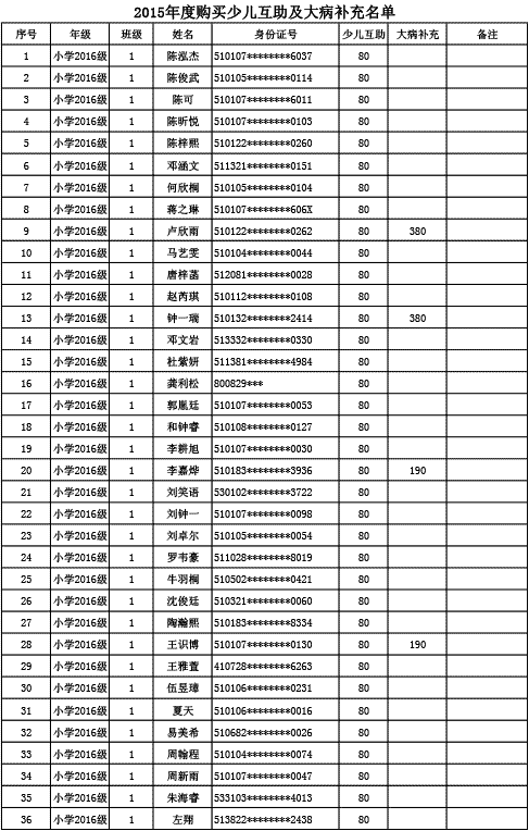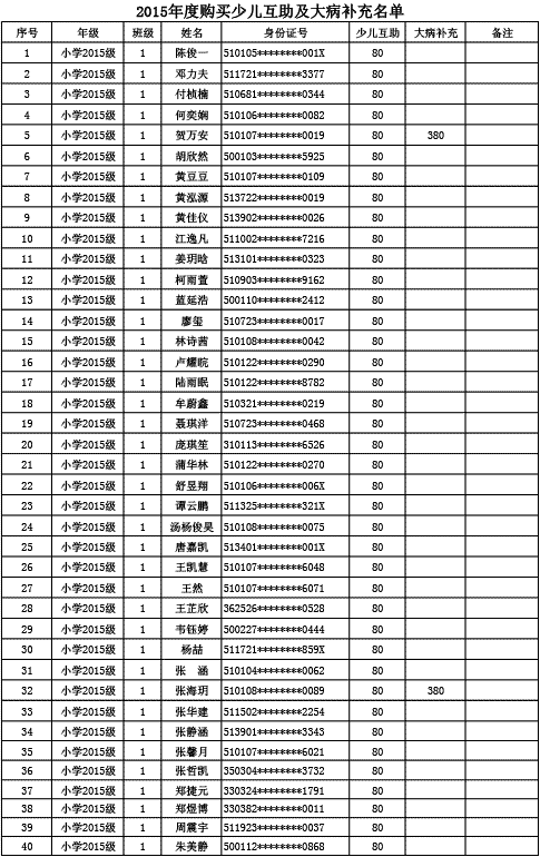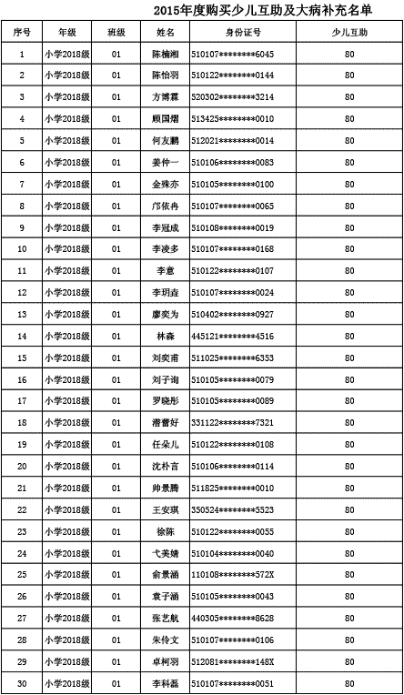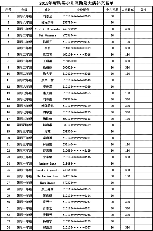 成都美視學校已購買2015年度少兒互助金及大病補充醫(yī)療保險名單公示