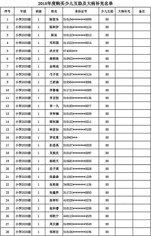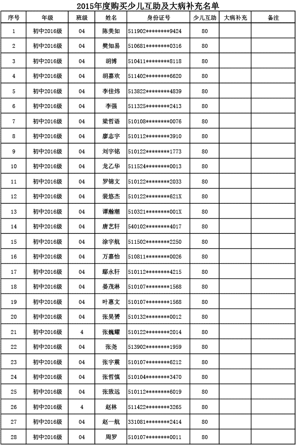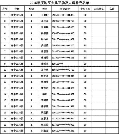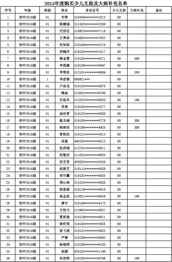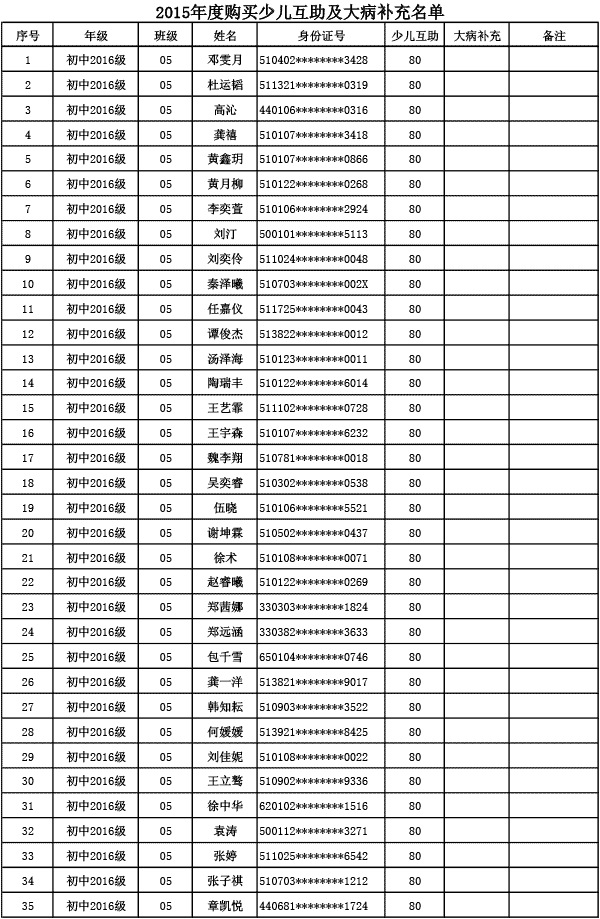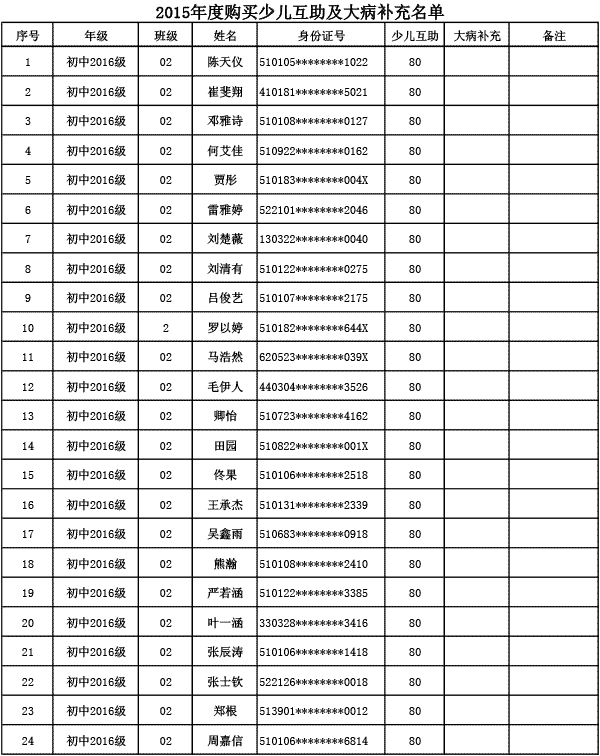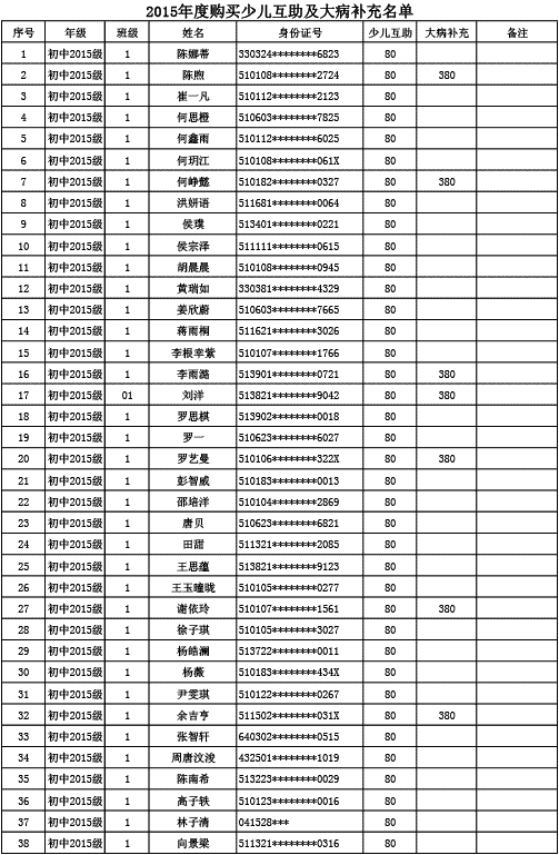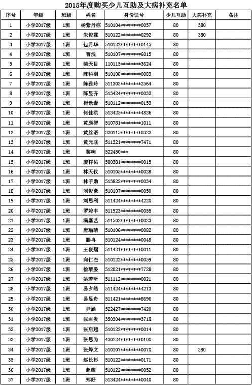 成都美視學校已購買2015年度少兒互助金及大病補充醫(yī)療保險名單公示