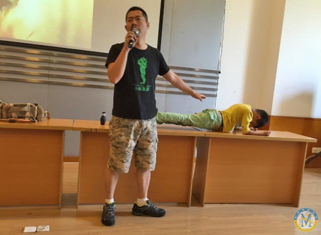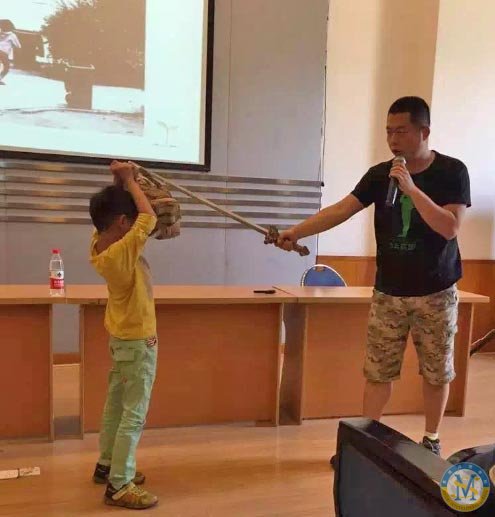 五月初,那位正在減肥的的何為哥哥再一次來到美視,為小學(xué)部二年級(jí)各班講授了防恐防暴安全自護(hù)的相關(guān)技能。