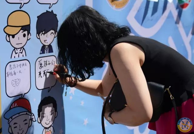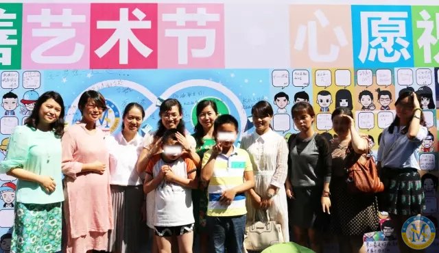 一大幅“臉萌祝福墻”吸引著來者的目光。MYP項目部全體師生為成都青羊區(qū)特殊教育中心的孩子們舉辦的慈善藝術(shù)節(jié)正待開場。