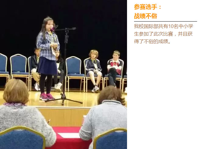 一年一度的國(guó)際學(xué)校聯(lián)盟Spelling Bee在成都國(guó)際學(xué)校舉行。我市5所學(xué)校的40多名中小學(xué)生參與了此次既緊張又精彩絕倫的比 賽。我校參賽選手表現(xiàn)不俗。