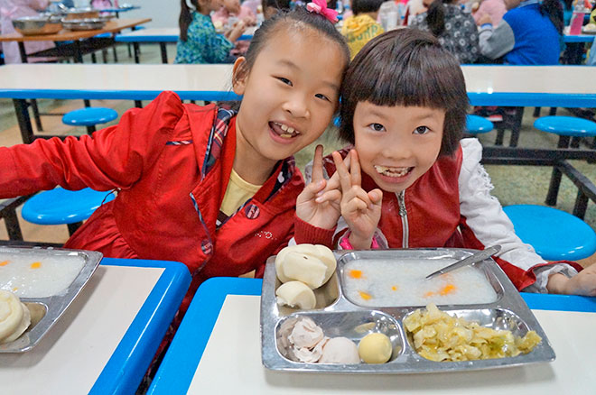 孩子們大口大口吃起了美視食堂的早餐。