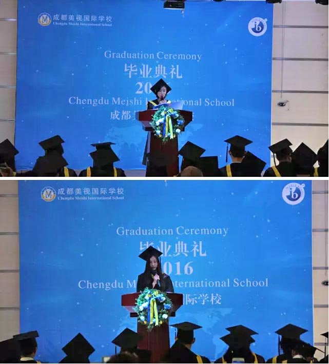 Liz Li和Whitney Bai作為畢業(yè)生代表發(fā)言,她們表達了對學校、對家人的愛與感恩,同時,身為學姐的她們也跟學弟學妹們分享了一些建議與忠告。在美視的三年,畢業(yè)生們通過努力學習,漸漸成為了有責任、有擔當、有國際視野的合格“地球公民”,在未來,他們也一定會為這個世界的發(fā)展和進步做出自己的貢獻。