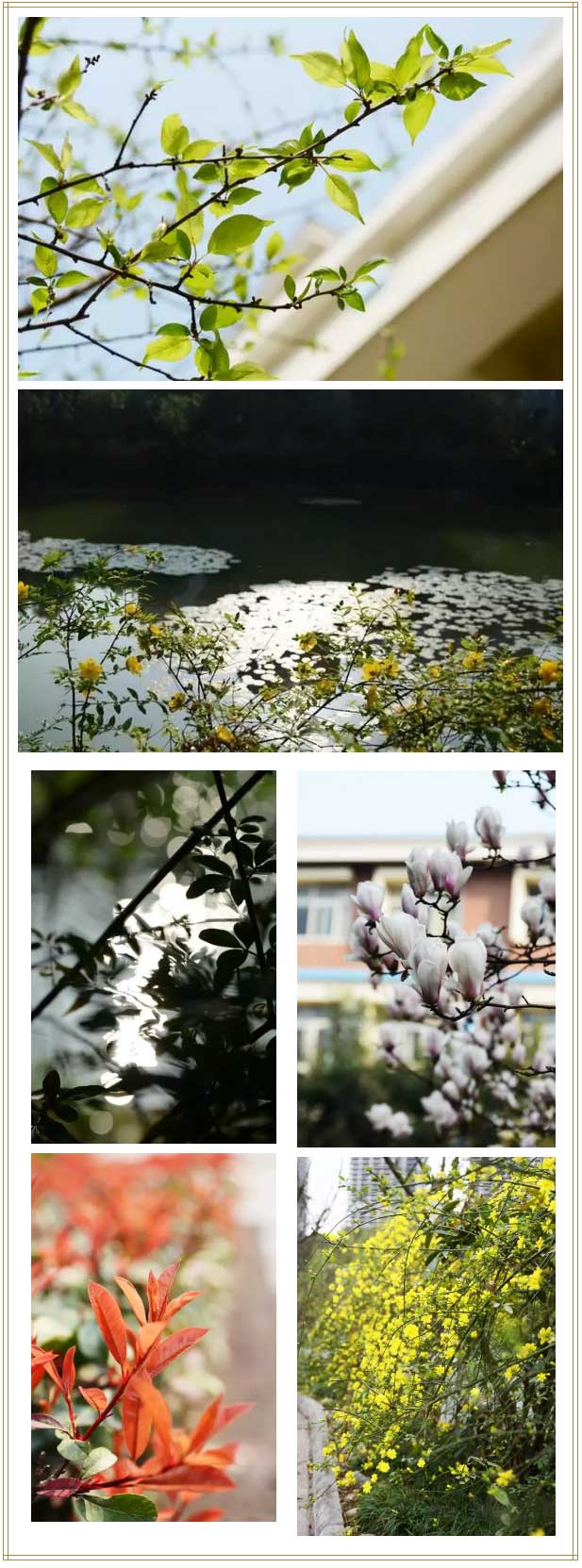 三月的陽光,星星點(diǎn)點(diǎn),鋪設(shè)一園爛漫春色。