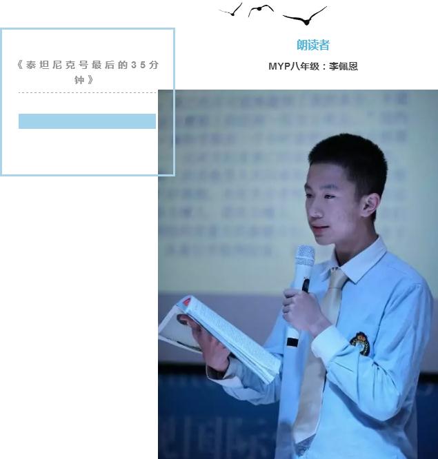 八年級(jí)的李佩恩同學(xué)的爸爸參加上一期家長版《美視朗讀者》的時(shí)候,原本選擇了一篇《泰坦尼克號(hào)最后的35分鐘》,后來在兒子的建議下更換了朗讀篇目,而兒子又將父親選擇的文章讀進(jìn)了學(xué)生版的現(xiàn)場。