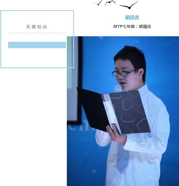 七年級(jí)的唐晟垚同學(xué)也曾充滿困惑,當(dāng)他讀到一首連題目也沒有的短詩時(shí),卻無法忘記詩中那種激勵(lì)自己的力量,他想把這種力量分享出來,給更多人以力量。