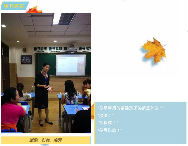 紀(jì)校長(zhǎng)以“激勵(lì) 鼓舞 喚醒”為題表達(dá)了作為家長(zhǎng)應(yīng)有的心態(tài)——欲速則不達(dá),見小利則大事不成。