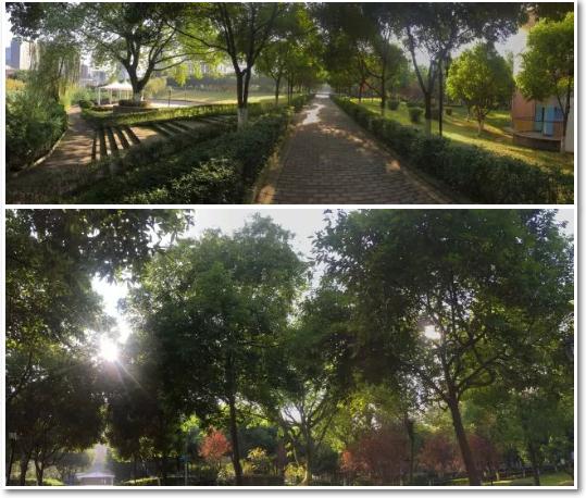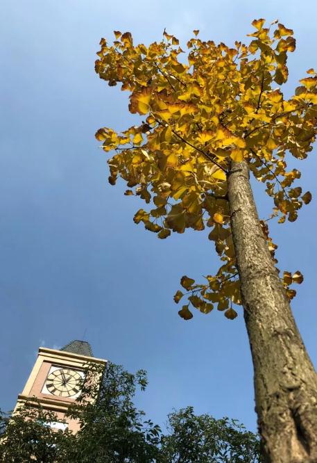 當(dāng)我拍下秋天的校園那一刻,它是翠綠的。