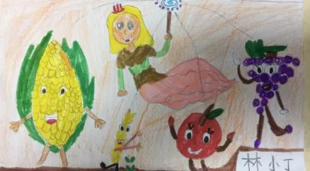 “變變變!”玉米變得黃黃的,葡萄變得像紫珍珠,蘋果的臉頰紅撲撲......朋友們都很開心,他們高興地一起玩耍!