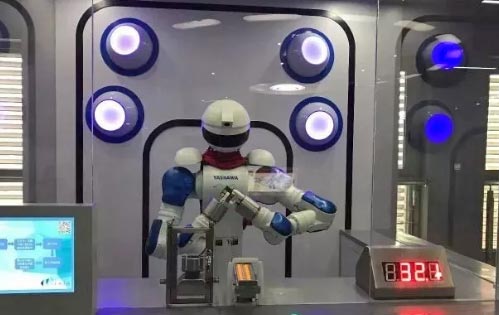 我把完整的魔方打散,放進(jìn)一個(gè)小門內(nèi)。機(jī)器人發(fā)現(xiàn)了它,把魔方拿起了,仔細(xì)端詳片刻。