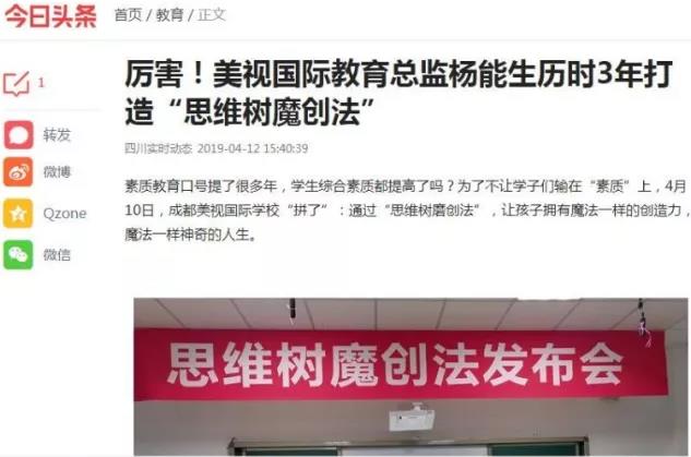 今日頭條-四川實時動態(tài):厲害!美視教育總監(jiān)楊能生歷時3年打造“思維樹魔創(chuàng)法