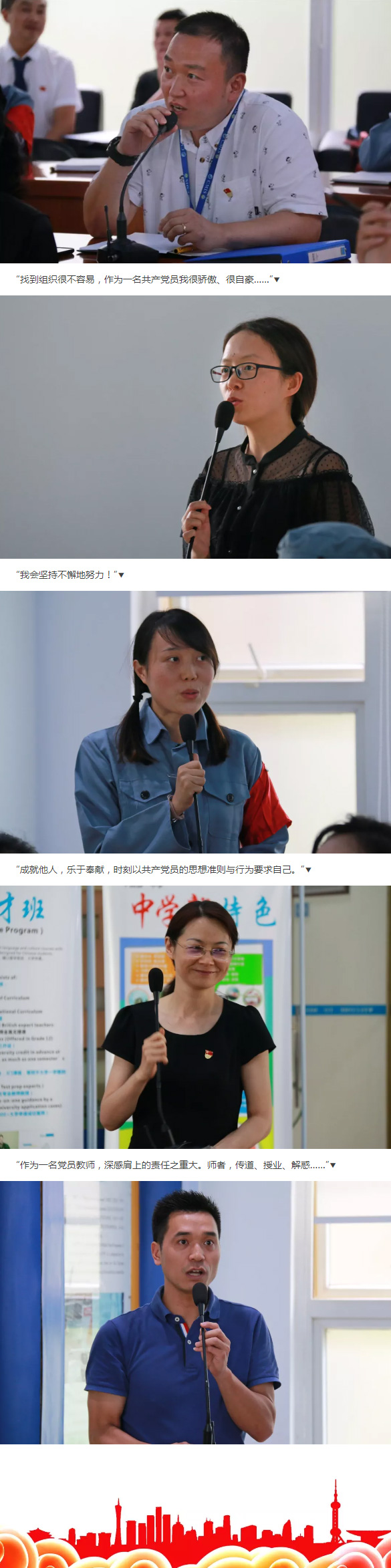 緊接著,所有黨員教師在黨總支書(shū)記徐校長(zhǎng)的帶領(lǐng)下,進(jìn)行了以支部為單位的活動(dòng)展演。