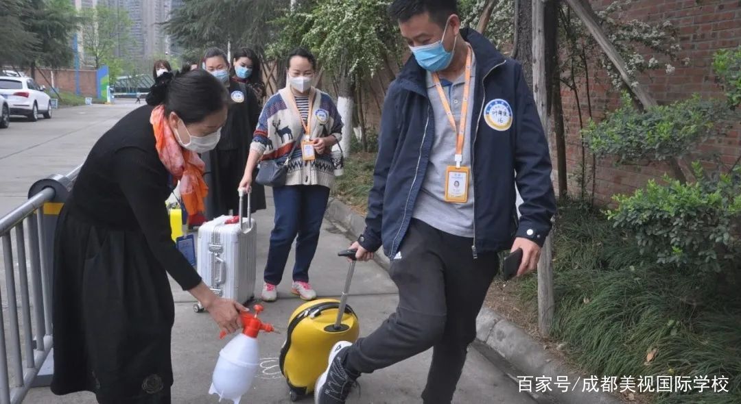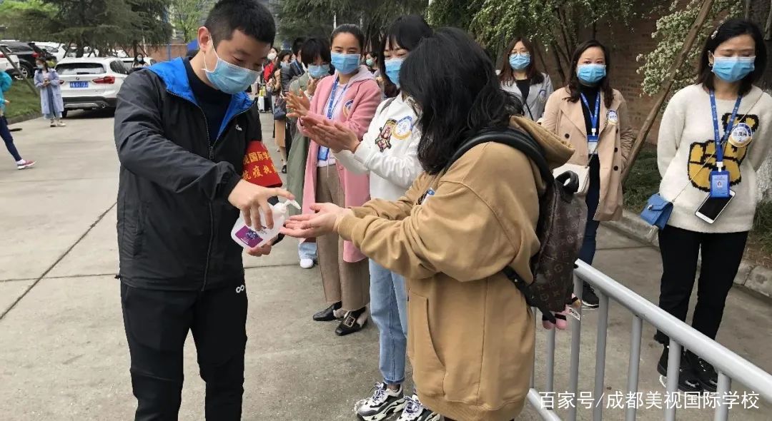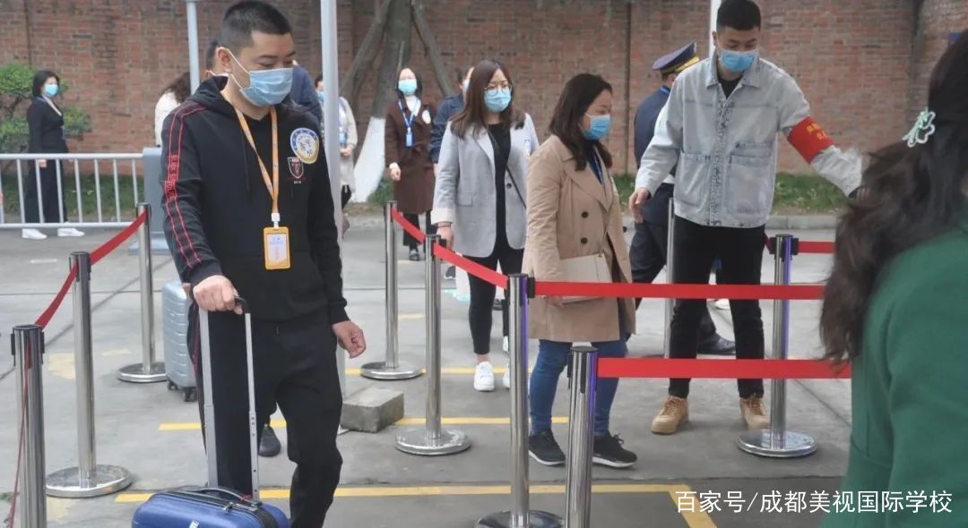 入校后,間隔有距的行進(jìn),安靜有序的列隊(duì),進(jìn)入寢室放置生活用品后,洗手消毒返回教室。