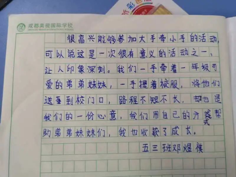 在美視小學(xué)部,每個來到這個大家庭的小弟弟小妹妹們,都是幸福的。這里有老師們的愛,這里還有大哥哥大姐姐的溫暖行動。在活動中,哥哥姐姐關(guān)愛有加,弟弟妹妹文明有禮,我們都是最美的風(fēng)景。