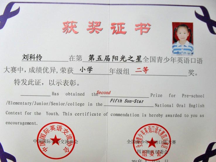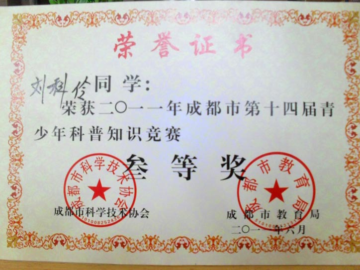 小學(xué)部三年級三班劉科伶、王奕親同學(xué)獲獎情況