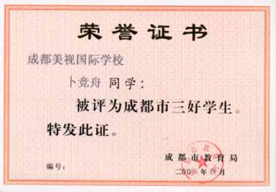 成都市市級(jí)三好學(xué)生:卜競舟