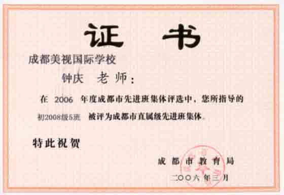 成都市市直屬級(jí)先進(jìn)集體:七年級(jí)五班 鐘慶