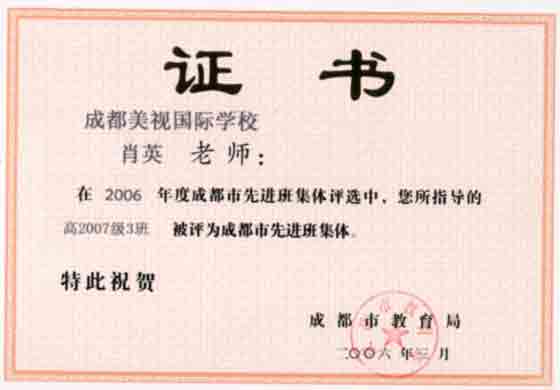 成都市市級(jí)先進(jìn)集體:十一年級(jí)三班 肖英