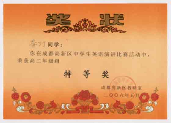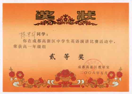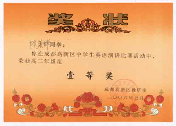 成都高新區(qū)中學(xué)生英語演講比賽活動獲獎名單