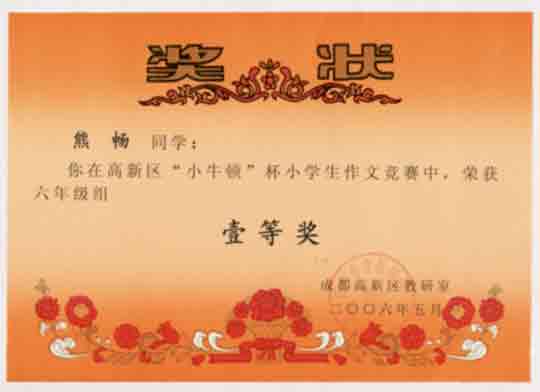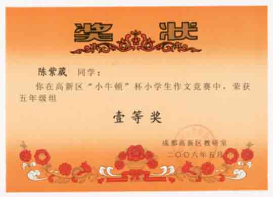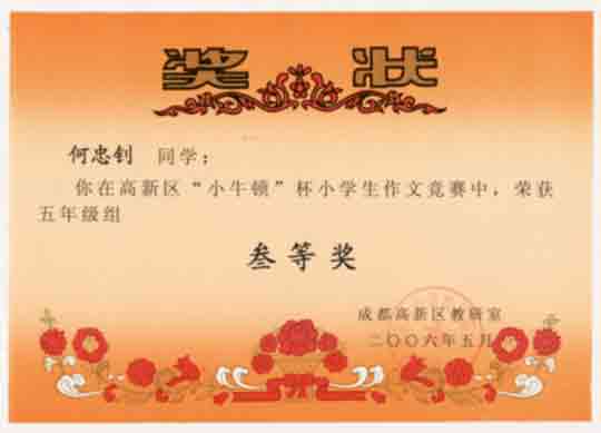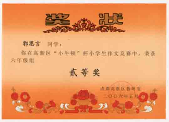 成都高新區(qū)“小牛頓”杯小學(xué)生作文競賽獲獎名