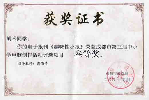 成都市第三屆中小學電腦制作活動獲獎名單