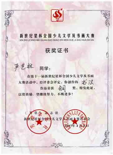 十一屆新世紀(jì)星杯全國(guó)少兒文學(xué)及書(shū)畫(huà)大賽獲獎(jiǎng)名單