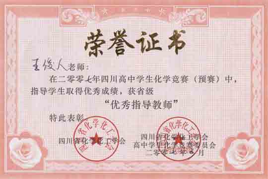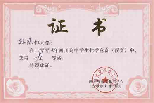四川高中學生化學競賽預賽獲獎名單