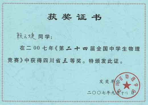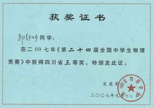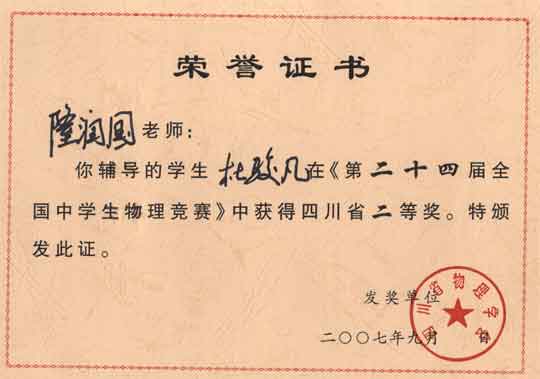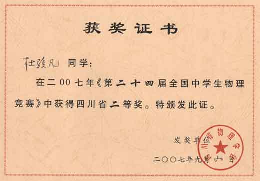 第二十四屆全國中學(xué)生物理競賽獲獎名單