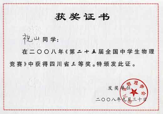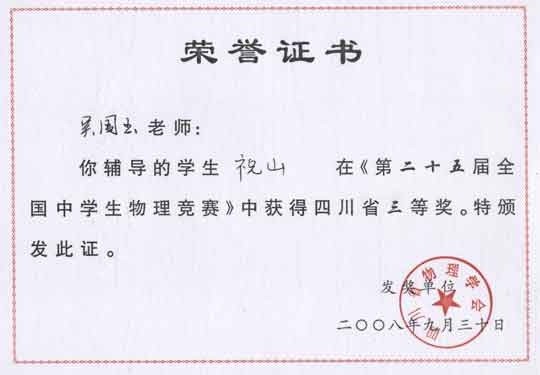 四川省三等獎(jiǎng) 祝山 指導(dǎo)教師 吳國玉