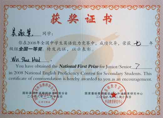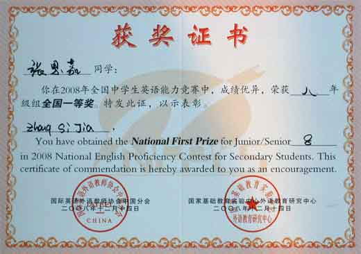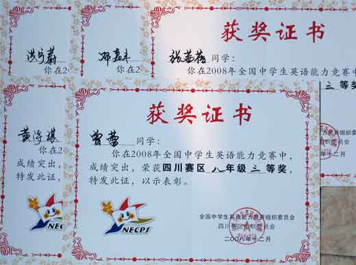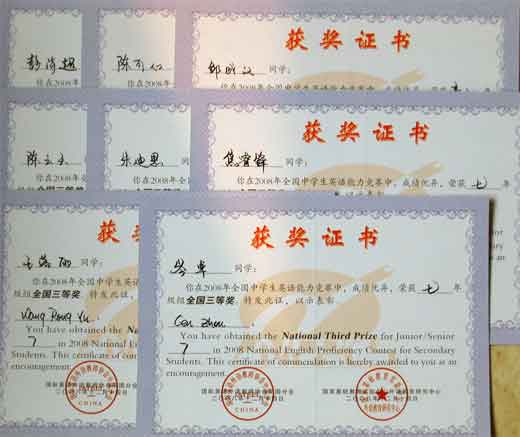 2008全國中學(xué)生英語能力競賽獲獎(jiǎng)名單