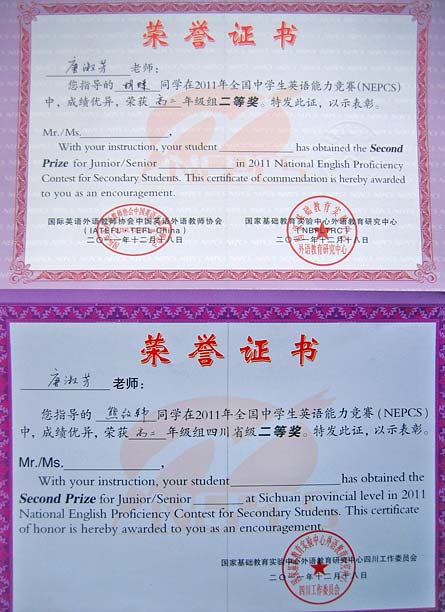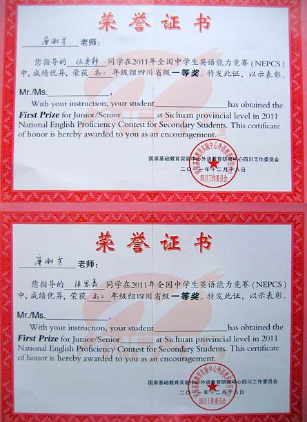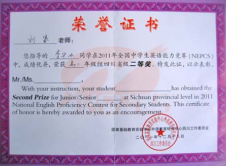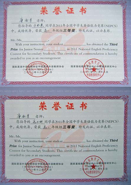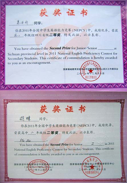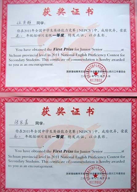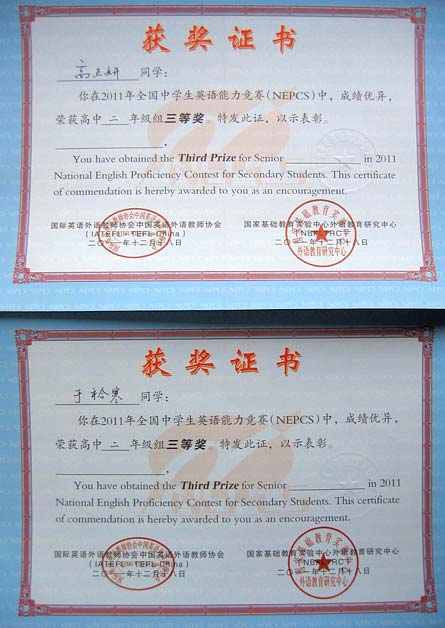 美視高中學(xué)子在2011年全國(guó)中學(xué)生英語(yǔ)能力競(jìng)賽中獲得優(yōu)異成績(jī)