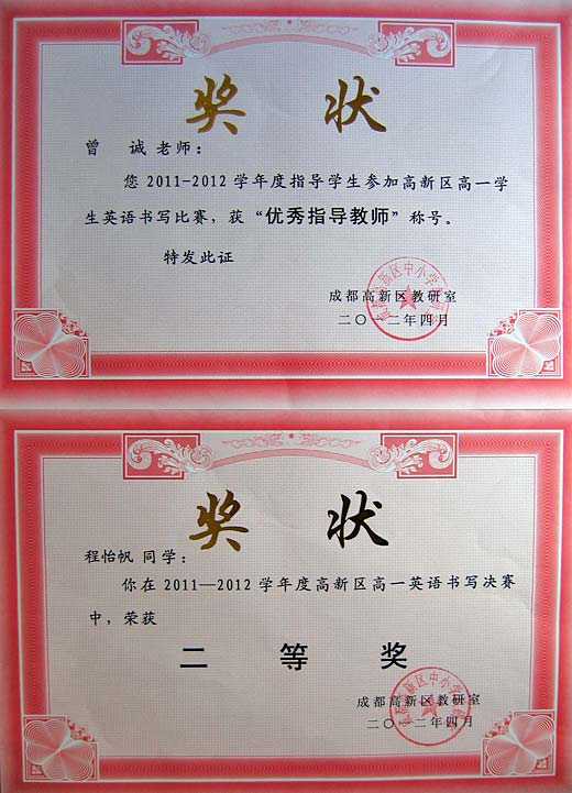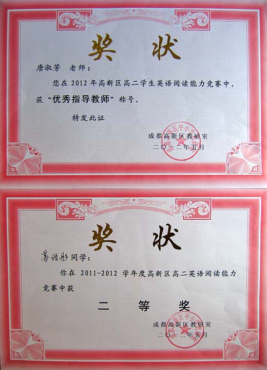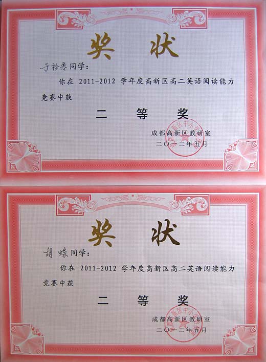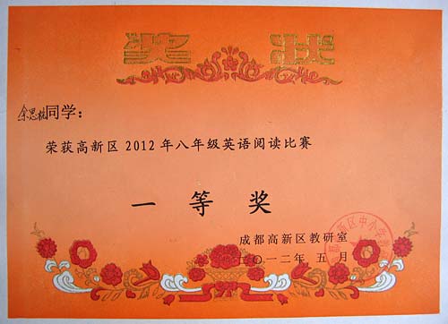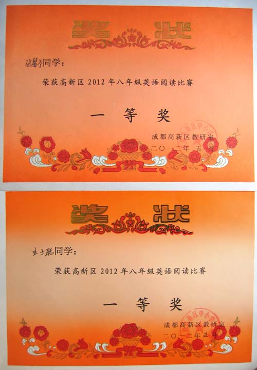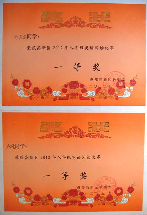 美視學子榮獲2012年高新區(qū)英語閱讀比賽一、二等獎