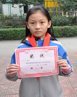 ▲ 陳浩洋同學(xué)-榮獲成都市高新區(qū)第八屆中小學(xué)生運(yùn)動(dòng)會(huì)女子小乙組實(shí)心球比賽第二名