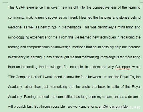 這次是美視學(xué)校融合部第一次組隊參賽, 前期經(jīng)過精細的選拔,將初中段(六、七、八年級)綜合實力較強的學(xué)生邀請入隊,并邀請校內(nèi)學(xué)術(shù)能力精湛,教學(xué)經(jīng)驗豐富的學(xué)科老師組成金牌教練團,為學(xué)生提供周密的備賽計劃,短時間內(nèi)全面提高了學(xué)生的綜合學(xué)術(shù)能力。正如參賽同學(xué)回顧的那樣,“當(dāng)我身處上千名初中生聚集的大賽現(xiàn)場時,我深刻感受到了USAP不是一場功利性的“考試”。USAP帶給我的不只是知識,更是抗壓能力、團隊合作能力和獨立學(xué)習(xí)的能力,最重要的是讓我擁有了在苦雨孤燈之后獨自砥礪前行,逆流而上的勇氣”。