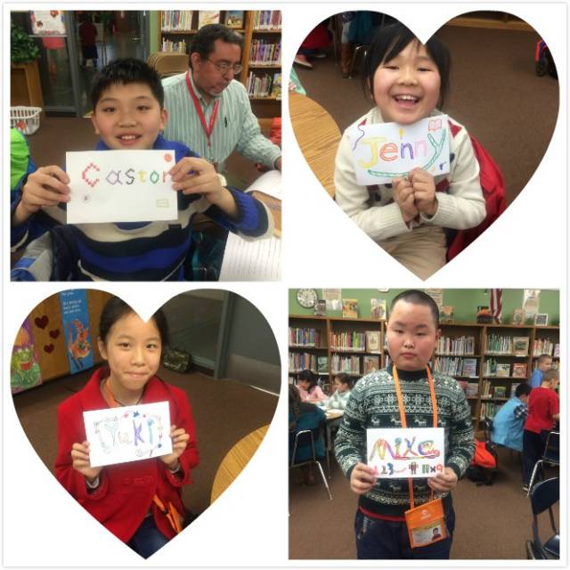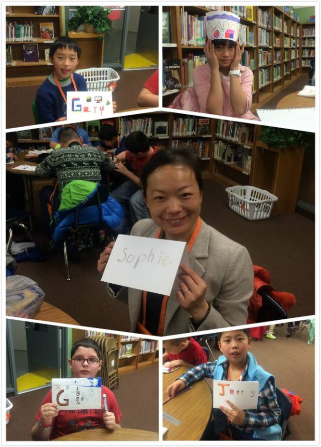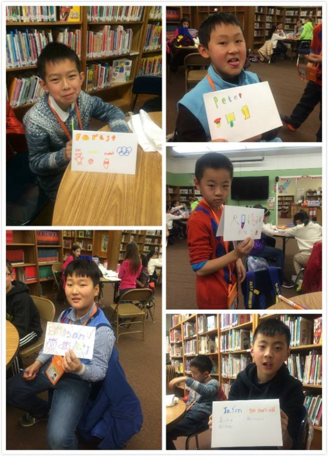 上午在全校集會(huì)上逐一作自我介紹,與同班美國(guó)小朋友結(jié)成對(duì)子,并進(jìn)行了破冰活動(dòng)(圍個(gè)圈互動(dòng)),以消除陌生感增進(jìn)了解。通過(guò)創(chuàng)意名片的制作,互訪深入了解朋友的信息并促進(jìn)大膽交流。