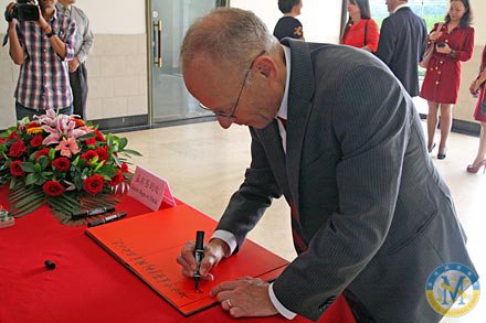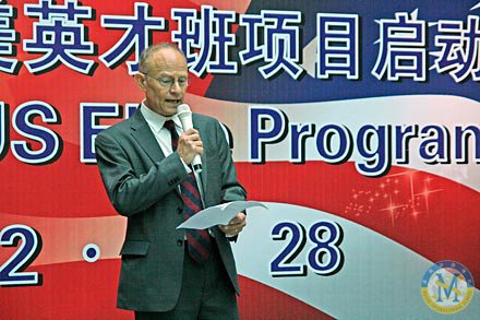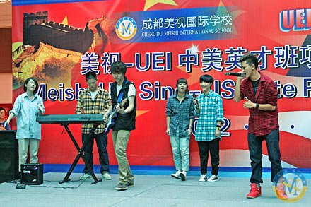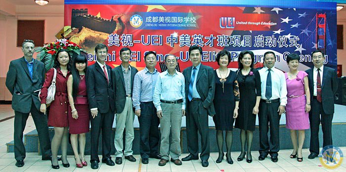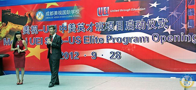 2012年9月28日下午4點(diǎn)30分,成都美視學(xué)校中學(xué)部大廳,美國駐成都總領(lǐng)事館首席商務(wù)領(lǐng)事William Marshak先生,美國駐成都總領(lǐng)事館高級(jí)商務(wù)官員華海燕女士,美國駐成都總領(lǐng)事館商務(wù)教育專家林麗萍女士,成都市民辦教育協(xié)會(huì)副會(huì)長兼秘書長張遠(yuǎn)清先生出席了本次儀式,同時(shí)有近百名家長慕名而來。儀式上各位嘉賓,美視學(xué)校領(lǐng)導(dǎo)以及UEI總裁Dan Plaut先生分別上臺(tái)致辭,參會(huì)代表們對(duì)美視-UEI 中美英才班項(xiàng)目予以高度的贊揚(yáng)和肯定并對(duì)美國UEI將此項(xiàng)目落戶成都表示熱烈的歡迎和大力的支持!隨后,中美英才班的學(xué)生家長代表上臺(tái)與大家分享了感想,英才班的學(xué)子們也上臺(tái)表演了精彩的節(jié)目,在全場陣陣的掌聲和美好的祝愿中本次儀式圓滿落幕。