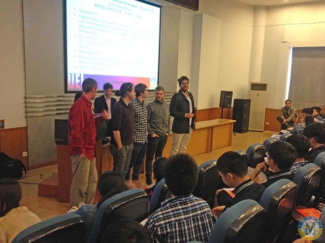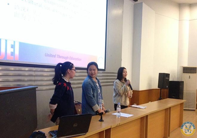 Dan and Misha is telling the students the characteristics of SAEP, and foreign universities application process