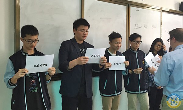俗話說(shuō):“不以成敗論英雄”。在申請(qǐng)大學(xué)時(shí),我們也會(huì)發(fā)現(xiàn),大學(xué)的錄取要求也是不完全以成績(jī)的優(yōu)劣來(lái)論學(xué)生。為了讓同學(xué)們更加清楚,加州路德大學(xué)招生主任Dane Rowley先生特意準(zhǔn)備了互動(dòng)環(huán)節(jié)。首先,Dane先生邀請(qǐng)了幾位同學(xué)來(lái)到講臺(tái)上,緊接著各位同學(xué)們被分為成績(jī)優(yōu)秀組,成績(jī)中等組,成績(jī)中下組。相信各位看到這里,一定會(huì)想“中下組應(yīng)該沒(méi)戲了,GPA(平均成績(jī))那么低,很難申請(qǐng)到好大學(xué)了”。然而最后一些GPA相對(duì)較高的同學(xué)卻反而被淘汰出局了,相反之前不被看好的同學(xué)卻能夠申請(qǐng)到較好的大學(xué)。所以我們不要以片面的觀點(diǎn)來(lái)看待大學(xué)申請(qǐng)這件事兒。