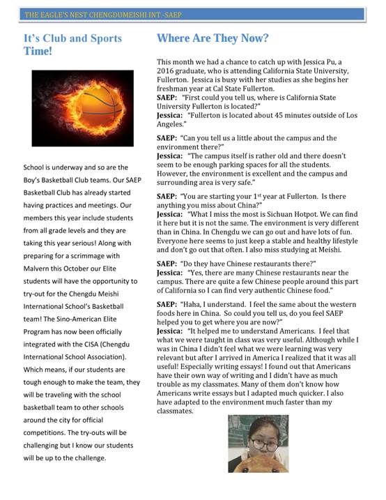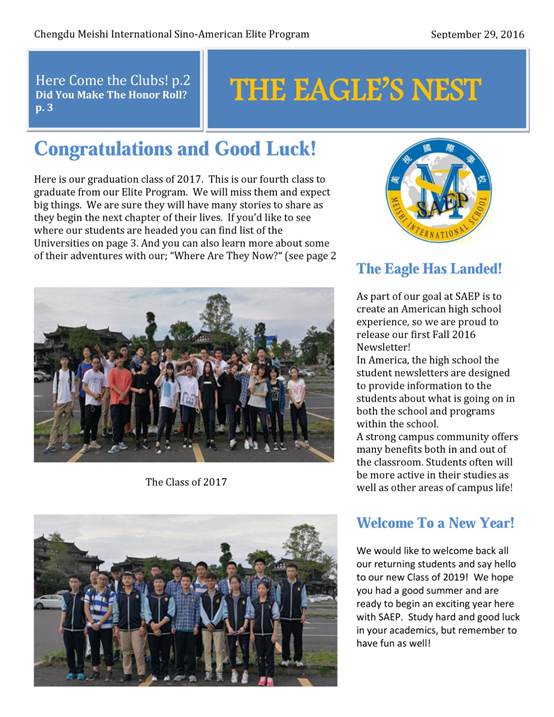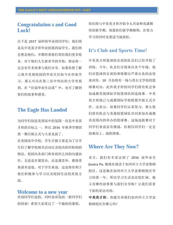 為同學們創(chuàng)造美國高中的氛圍一直是中美英才班的目標之一,所以2016年秋季學期的第一期月報正式與大家見面了。