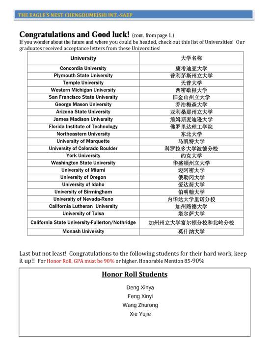 如果你想知道未來你可能會去哪所大學,找找看下面的大學里有沒有你心儀的!往屆畢業(yè)生們收到了以下大學的錄取通知書: