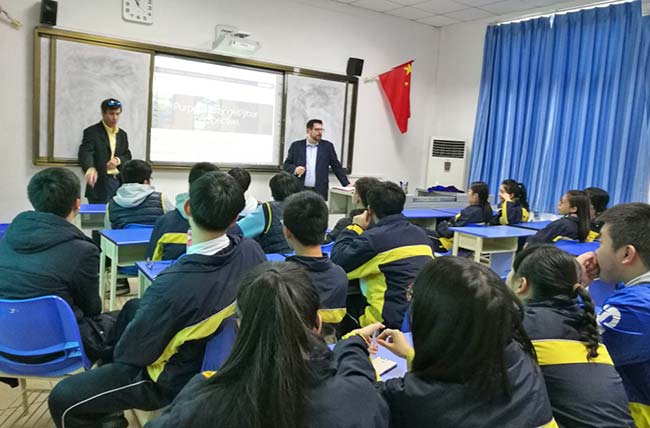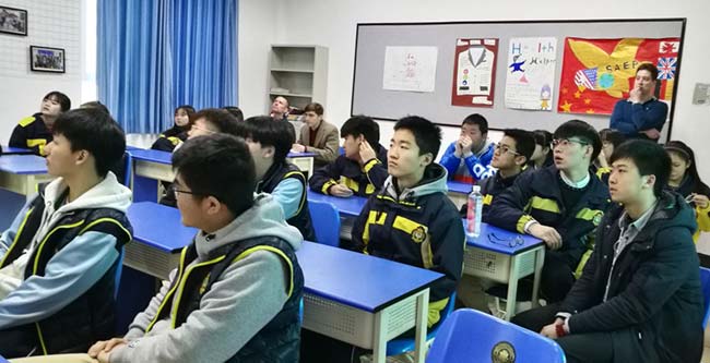加州路德大學(xué)招生主任Dane Rowley先生與中美英才班的同學(xué)們暢談國外求學(xué)生活。作為國際招生主任,Dane對于國際生在申請大學(xué)方面有著非常豐富的經(jīng)驗和深刻的體會。高三同學(xué)們在幾個月之后將要踏上異國國土,開始他們的求學(xué)之旅。因而同學(xué)們就未來大學(xué)生活比較關(guān)心的幾個方面向Dane進行了提問,比如:宿舍、費用、校園文化、安全問題以及初到新環(huán)境的不適應(yīng)。Dane以自己的經(jīng)驗和見解詳細(xì)地回答了同學(xué)們所關(guān)心的問題,并給出了建議。高二的同學(xué)們也將在今年下半年開始大學(xué)申請,因而Dane向同學(xué)們介紹了如何了解學(xué)校、選擇學(xué)校,如何為大學(xué)申請做準(zhǔn)備。