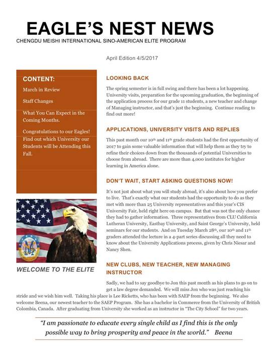 《鷹之巢》--中美英才班4月報(bào)
