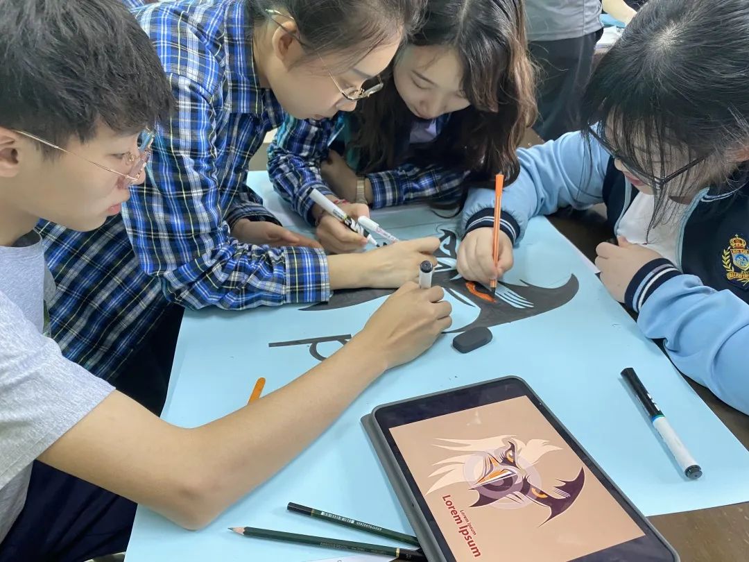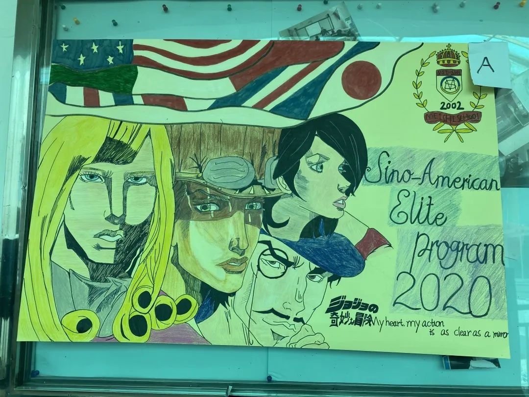 今年的這些海報(bào)設(shè)計(jì)或有豐滿生動的日本漫畫人物,或有可愛俏皮的卡通人物,亦或有中美班主打的“鷹”元素。盡管紙張的大小有限,但同學(xué)們參與的熱情和設(shè)計(jì)的想象力是無限的。最終,高一廖鴻宇、付一笑和明韻同學(xué)所在小組的作品獲得了勝出。